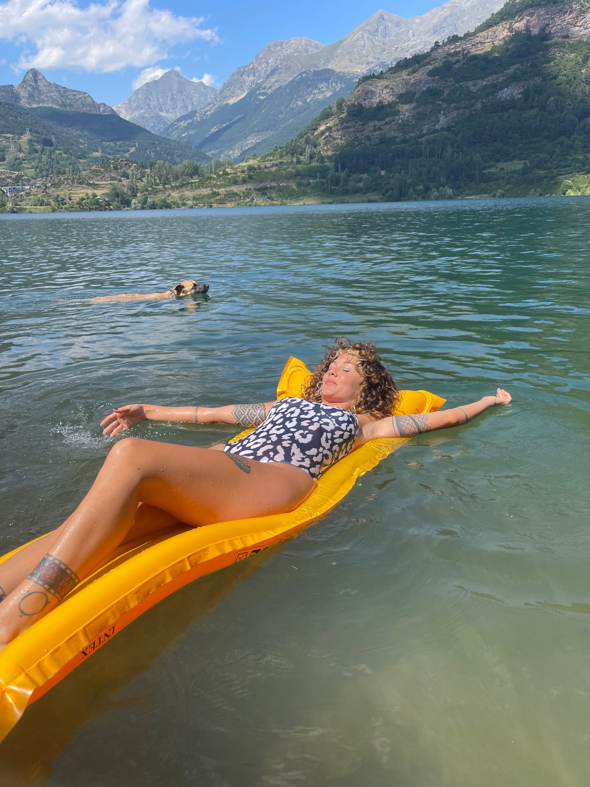 Un bañador estilo balconnette con aire ochentero, Sin aro con forro en la parte del pecho para mayor sujeción y tirantes regulables.