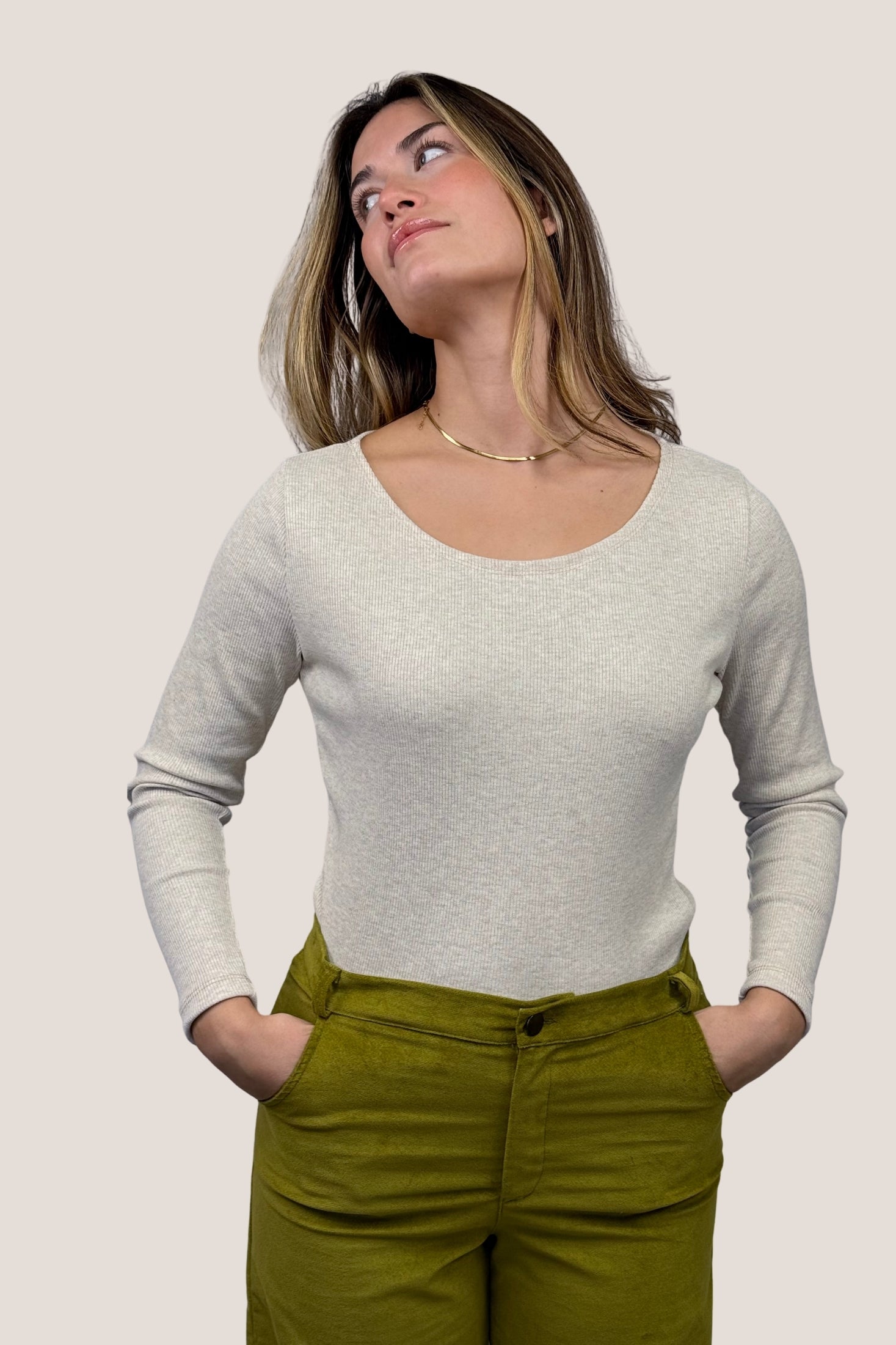 Confeccionada con un canalé de algodón orgánico muy suave, esta pieza refleja el compromiso de Neu de Cotó con la sostenibilidad y la calidad duradera de tus prendas básicas.