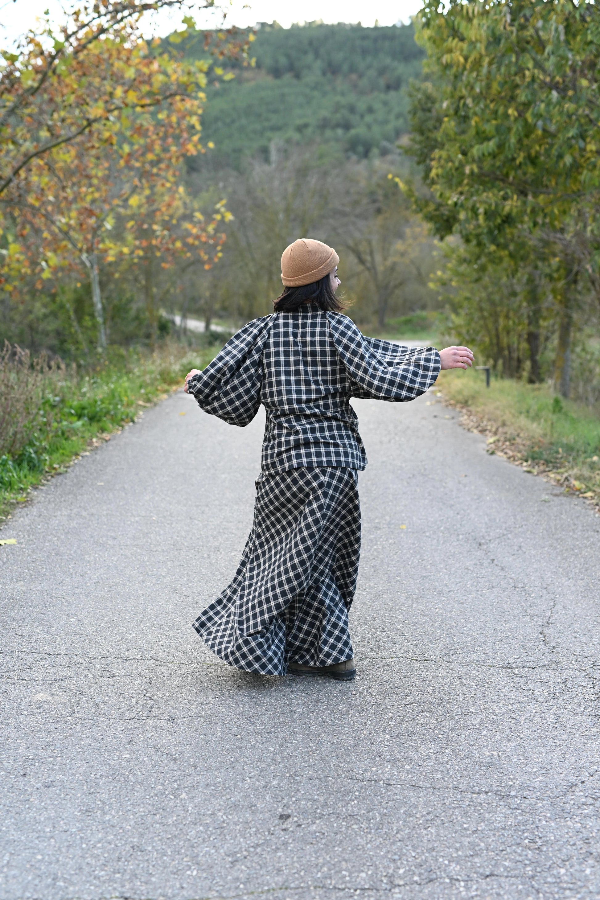 *EL BAJO DE LA FALDA INCLUYE UN DOBLADILLO DE 5CM PARA AJUSTAR LA LARGADA SI ES NECESARIO. La falda tiene mucho vuelo y cae con fluidez.