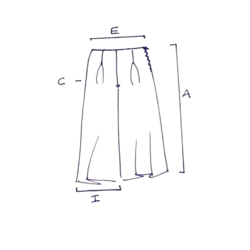 Entallado a la cintura alta con detalle de pinzas en delantero que aportan vuelo a lo largo del pantalón. Cremallera lateral para un ajuste cómodo y pinzas traseras.