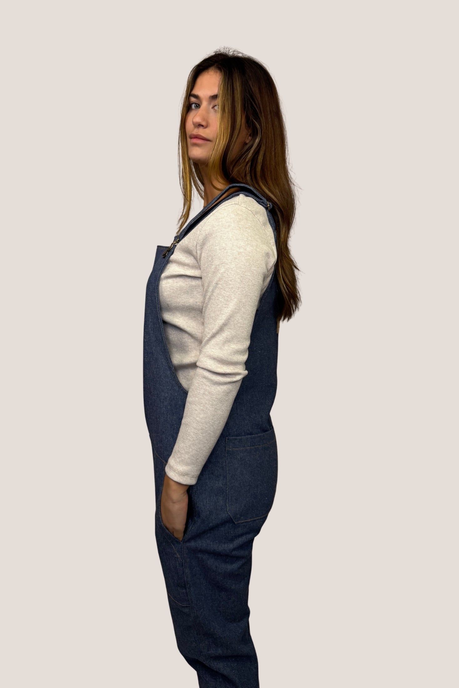 El peto ALINS en color tejano oscuro es una prenda versátil y resistente, pensada para acompañarte en tu día a día con estilo y conciencia. Su diseño unisex y su corte ancho lo hacen cómodo y adaptable a todo tipo de cuerpos.