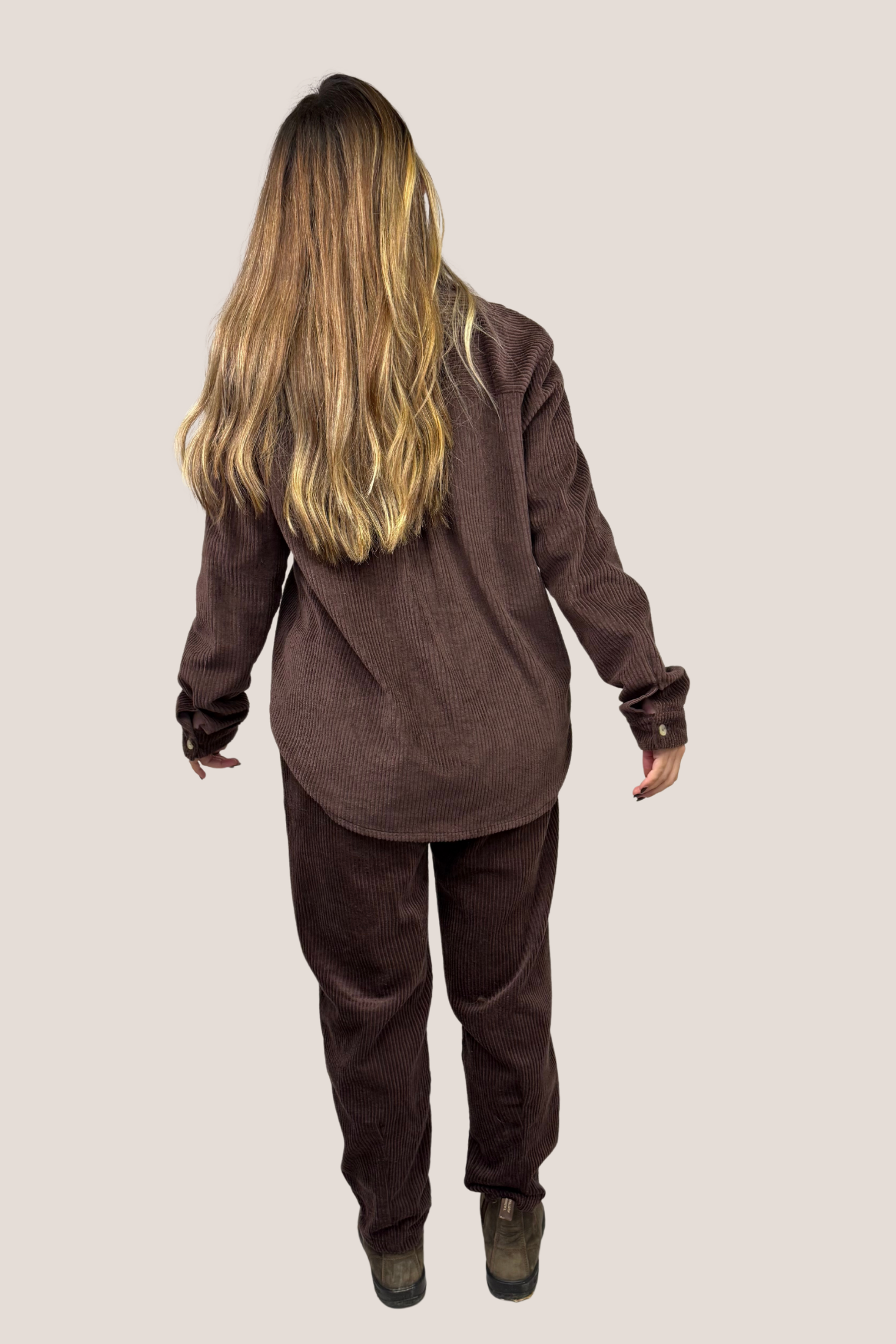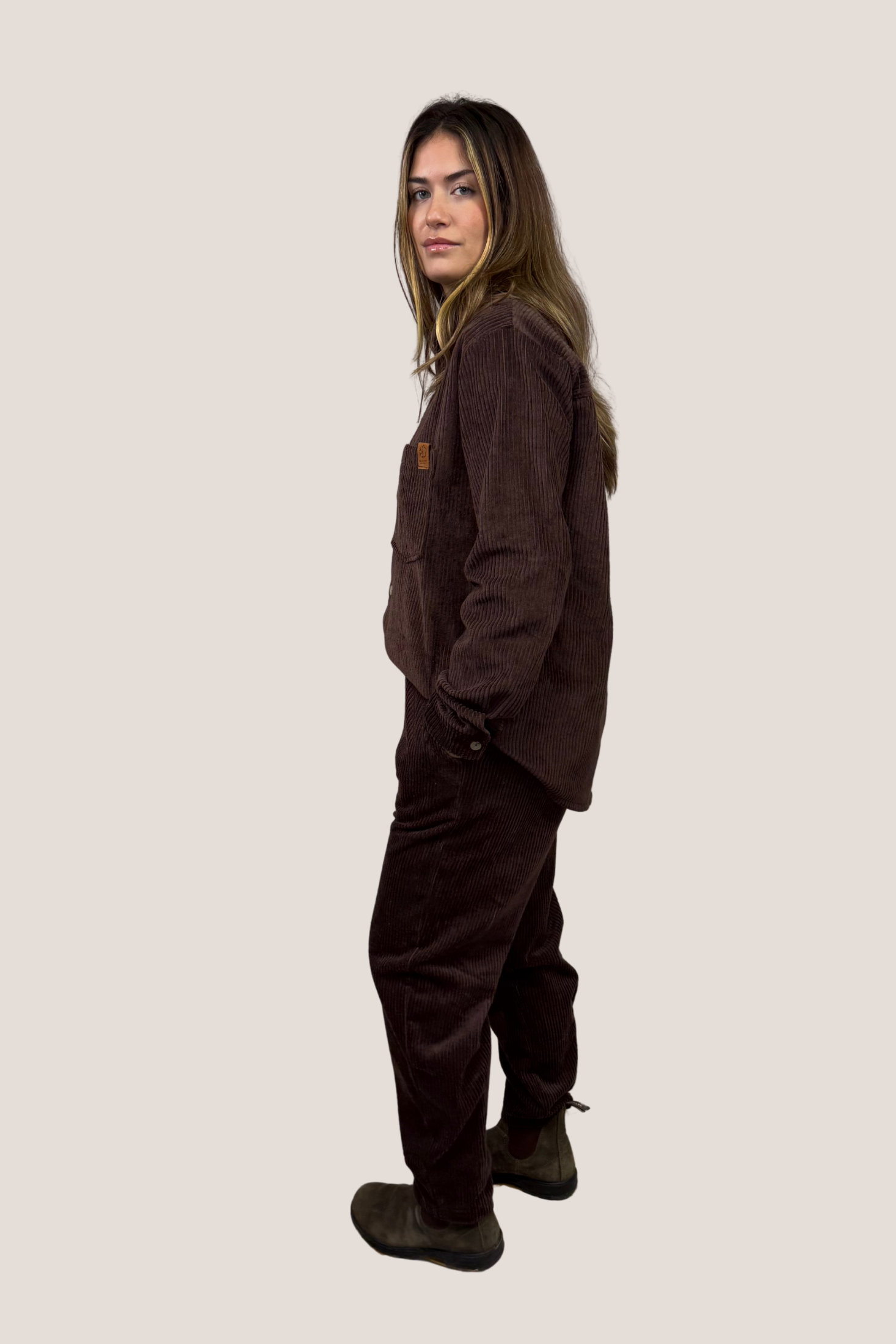 La sobrecamisa Bolvir en pana marrón es una prenda diseñada para quienes valoran la moda consciente y la elegancia atemporal.
